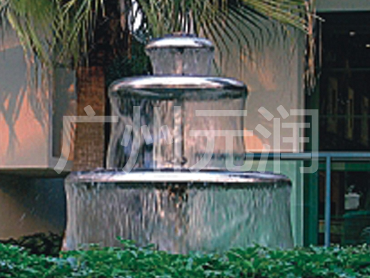 造型美观大方,观赏效果好,不喷水时也有较好的观赏体验,水从三层碟盘上跌落而下,形成的水膜形如三级水景伞。