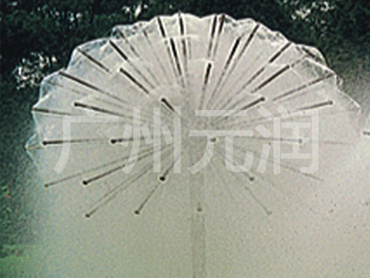 蒲公英喷头又名水晶绣球喷头,是许多细小支管的小喷头连接在中心球体成而组成一个放射状球体形,每根支管的外端装有向周围折射的喷嘴,由于嘴口径较细,水质要求较高,喷水时配以绚烂的灯光,其效果富丽豪华,形似绽放的蒲公英,洁白无暇,雄伟壮观,,蒲公英喷头的水型抗风能力强,主要适用于室外水池中。
