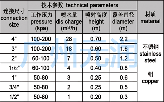 是利用光的折射原理,喷水时形成!匀的薄膜,其形状在无风和一定的水压下可形成一个完整的喇叭花型。这种喷雾适用于室内或庭院喷泉。在喷头下方可安装阀门节水量,同寸还可以调节喷头顶部的盖帽,使喷出的水花型达到最佳效果。